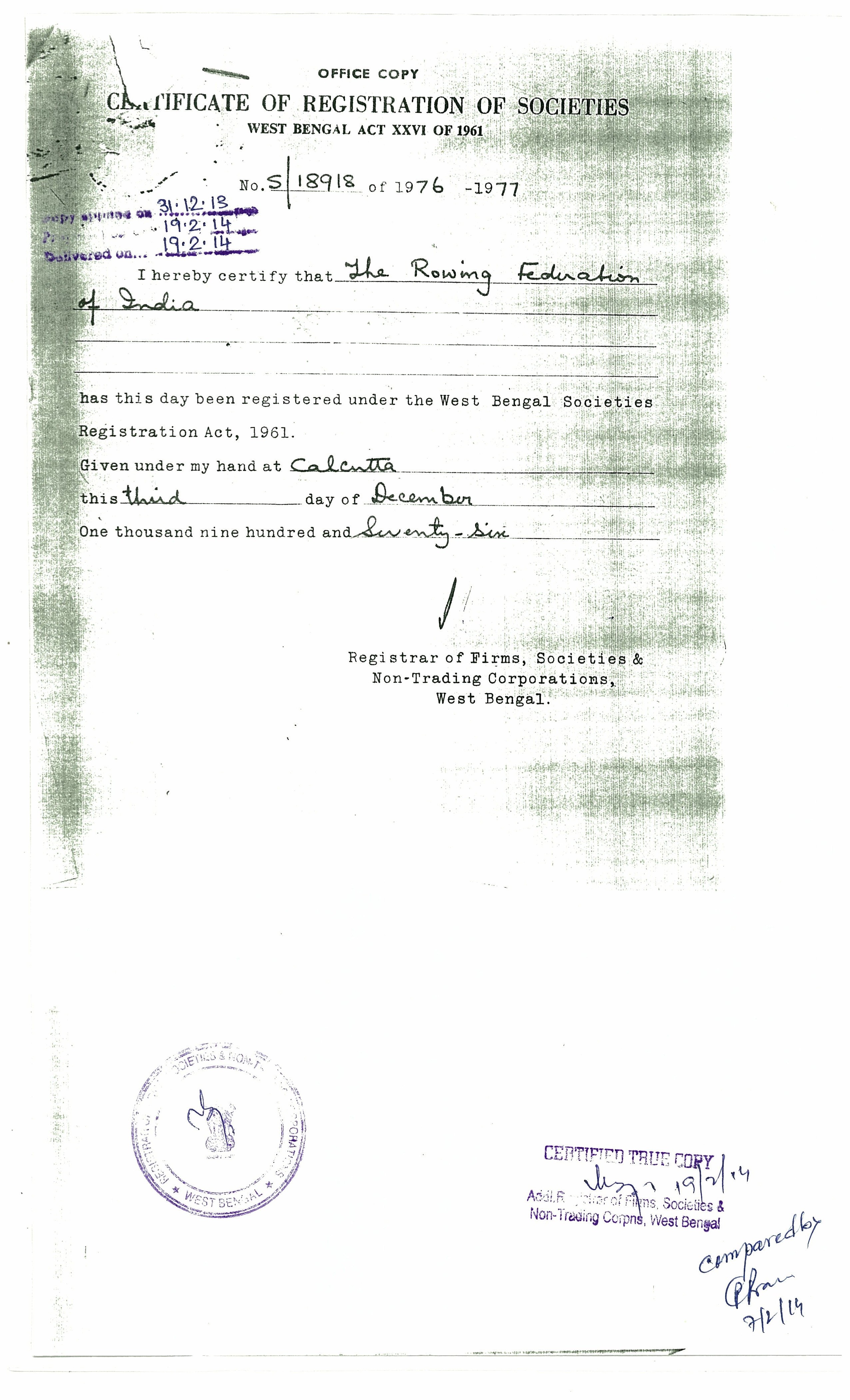 (9) (i) Constitution of the Sports Federation: - Registered As A Society Under Societies Act of West Bengal